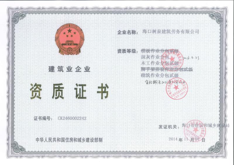 ??跇淙ㄖ趧沼邢薰境闪⒂?011年,公司位于???,其前身是一家專業建筑施工隊,自2004年即開始在海南從事建筑勞務施工。自成立至今,公司已經擁有一支科學管理、質量過硬、能打硬仗,搶工期的專業隊伍。能獨立承擔大中型工業與民用建筑 、室內外裝修、各類機電設備安裝工程。代表工程有海口濱海華庭、三亞時代海岸T01/02/04/05棟高層、合肥東海花園二期、陵水富力灣B區高層、三亞金中海(酒店)、瓊海大印經典花園、??诃h球海景大酒店(四星級酒店,在建中)、陵水珍珠大廈(五星酒店)、??谌f達廣場、美蘭機場二期。